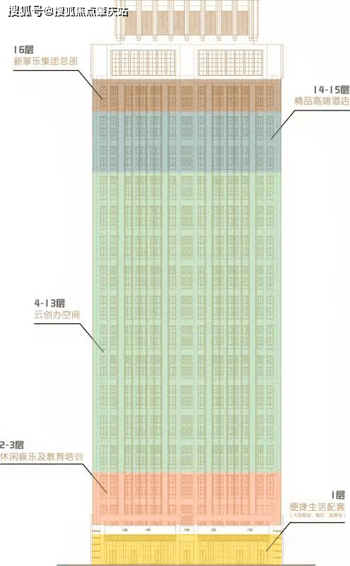 楼栋业态:1层便利糊口配套、2-3层休闲文娱及教育培训、4-13层云开办空间、14-15层精品高端酒店、16层新攀乐集团总部